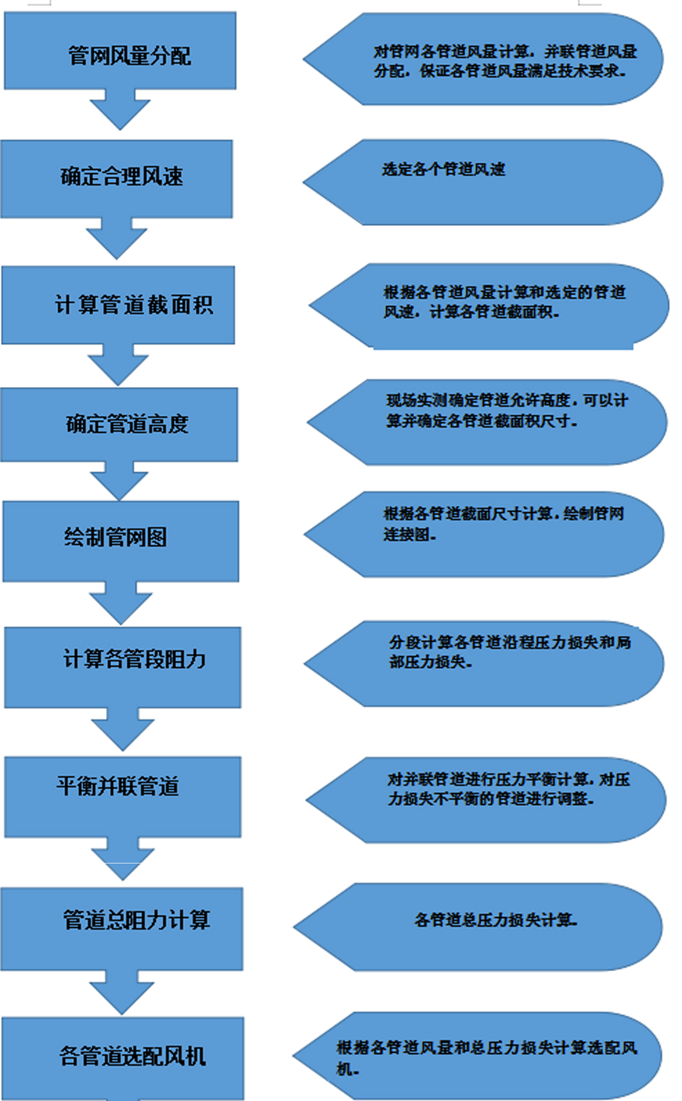 在完成管道排风量计算、管道布设后、开始管道设计计算,可按以下步骤进行。请见下图。