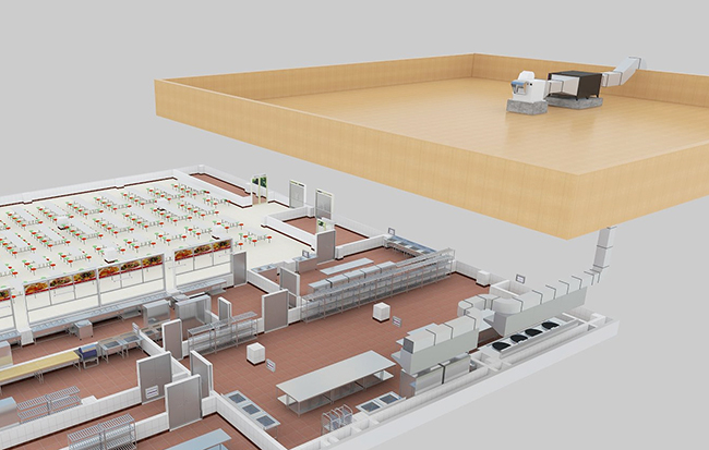 4.分区控制:商用91免费看黄片采用分区控制的安装配置方法,即餐厅91免费看黄片分为几个区域,每个区域根据排气量和面积和空气质量分配新鲜空气总量,通过直径防火阀控制。