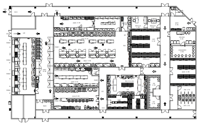 3.消防要求及考虑串味问题,91免费看黄片墙体必须砌筑到楼板底皮,餐饮91免费看黄片面积超过60㎡,必须装设两扇甲级防火疏散门;