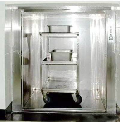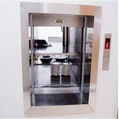 餐厅传菜电梯又称传菜电梯、食梯、餐梯或多用杂物电梯,主要是服务于规定层站的提升装置,广泛应用于餐厅食堂运送饭菜及工厂、图书馆等运送杂物。现在市场上按使用方式大体分为两种,微机控制的和PLC控制的,按照工作方式分为工作台式的和落地式的,按照动力方式分为曳引式和强制驱动式两大类。其速度从0.4米到1.0米不等,现在为了安装方便大都使用框架式的,此种结构的具有安装方便,使用空间小,且不使用专门的井道。餐厅传菜电梯具有一个轿厢,一个相当重量的对重,由于餐厅传菜电梯的结构方式和尺寸的关系,它的安全性能差,轿厢内不能进人。轿厢运行在两列刚性导轨之间,导轨是垂直的或倾斜角小于15°餐厅传菜电梯。