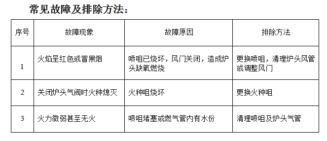 ⑤ 遇使用中熄火时,应分别关闭炉头燃气阀火种阀,排除残燃气后再重新点火操作;