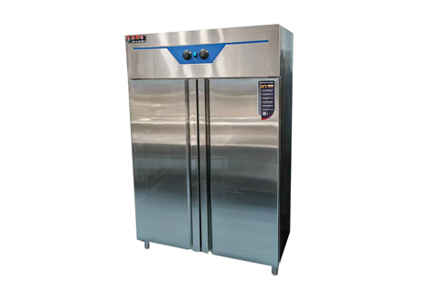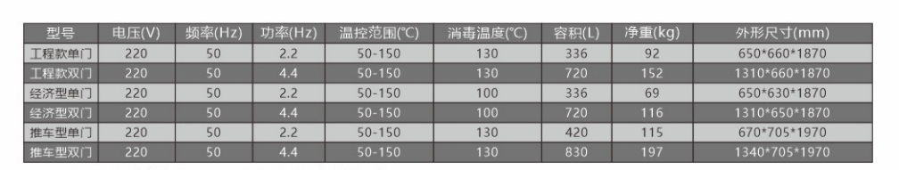 新款双门消毒柜是由电热管、循环风机为主要元器件产生以高温为消毒因子的食具消毒柜。适用范围:适用于餐饮具消毒。
