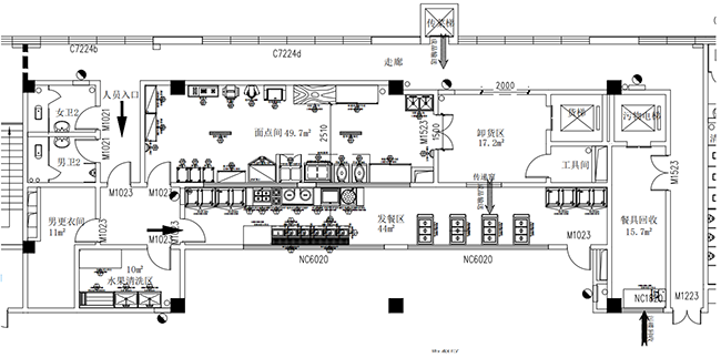 备餐区→凉菜间→91免费看黄片粗加工区→91免费看黄片热加工区→排出空外