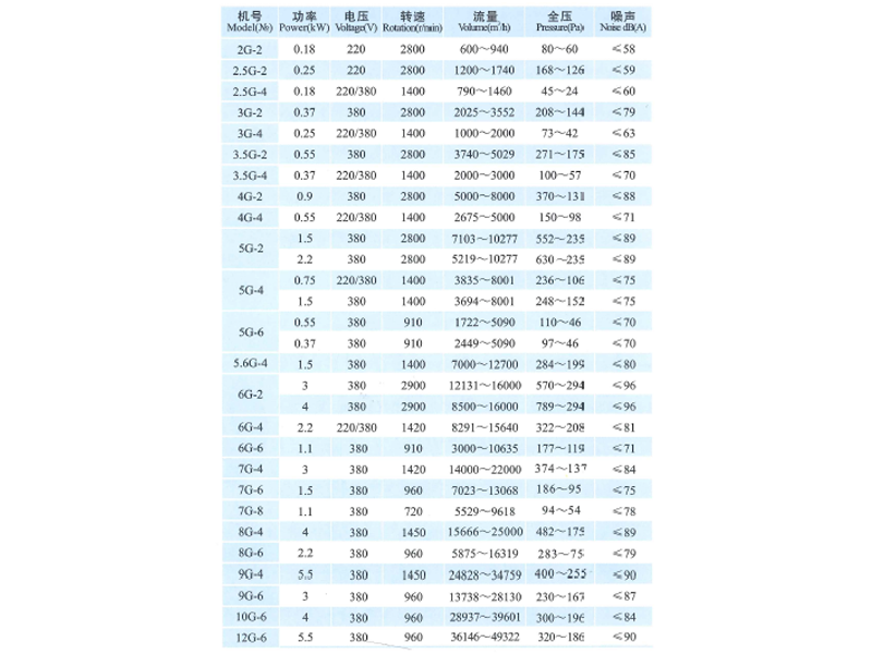 以上为风机的技术参数: