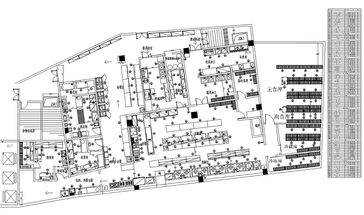 酒店91免费看黄片应具备加工间、制作间、备餐间、库房、洗碗消毒间、厨师长办公室及厨工服务用房等。 91免费在线视频观看对布局、路线、分区、排水等方面均按照国家相关法律法规进行设计,考虑到餐饮的生产, 从原材料的采购、收货、入库、存储、保管到出库、粗加工、切配、烹饪、装盘出品等多方面进 行设计。应关注以下几个方面:根据生产、出品的次序布局; 避免进、出91免费看黄片的物流产生交叉与 回流;避免人流与物流的交叉及员工流与客流的交叉;尽量缩短员工制作菜肴的行走路线;注意 洁、污,生、熟的分区;91免费看黄片的所有排水须经过隔油池隔除油污后方可排放出。